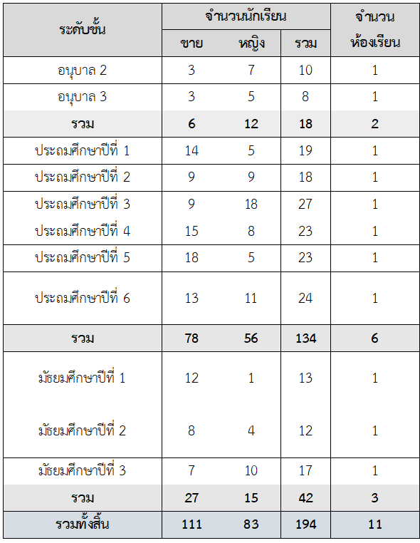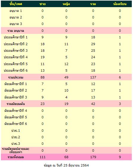 ข้อมูลนักเรียน ปีการศึกษา 2564