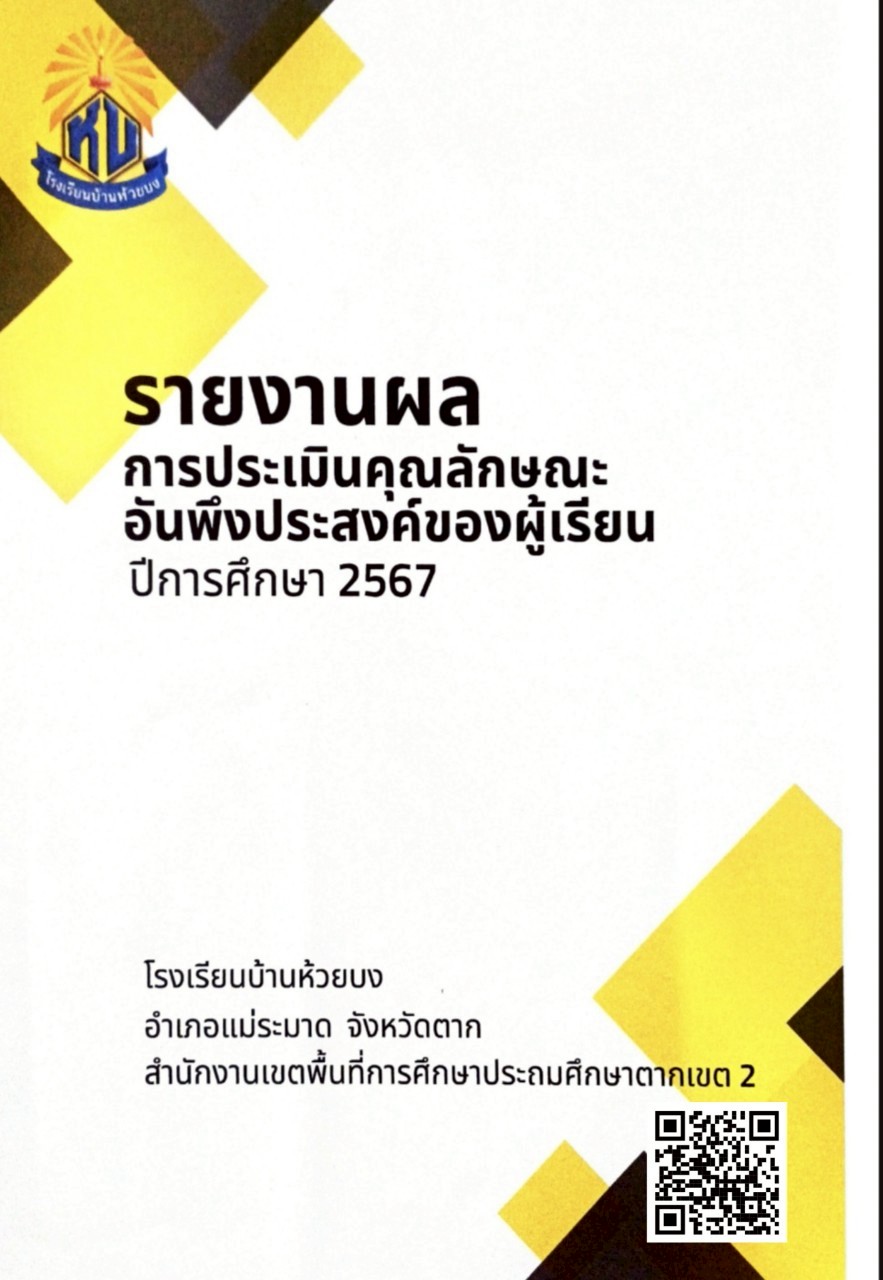 รายงานผลการประเมินคุณลักษณะอันพึงประสงค์ของผู้เรียน ปีการศึกษา 2567