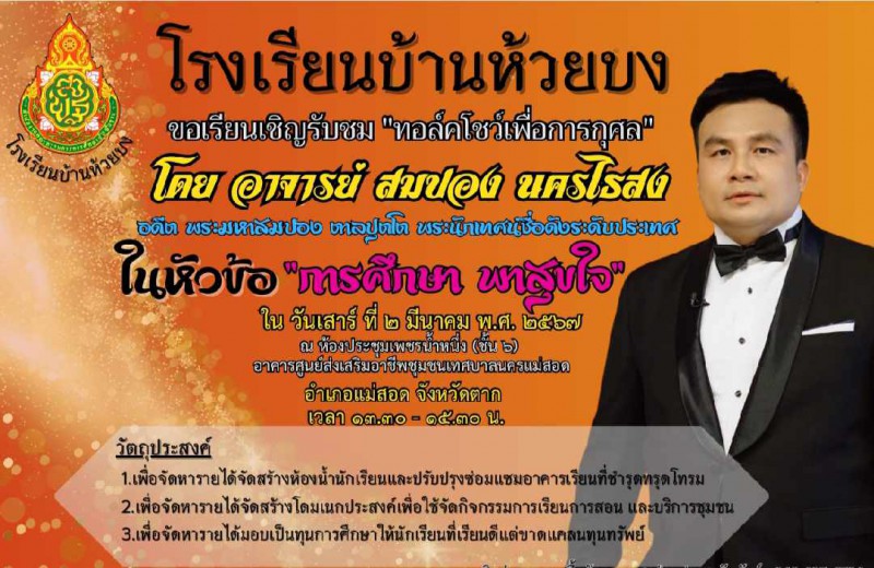โรงเรียนบ้านห้วยบงหารายได้จากการจำหน่ายบัตรเท่านั้น ไม่เรี่ยไรรับเงินบริจาคใดๆ