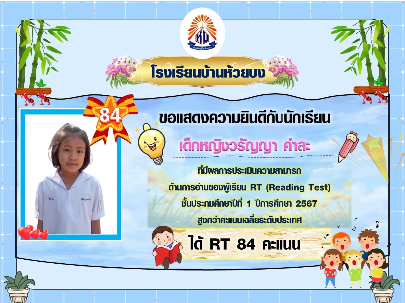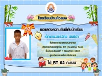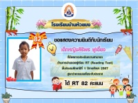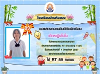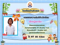 ขอแสดงความยินดีกับนักเรียนชั้น ป.1 ปีการศึกษา 2567 ที่มีผลการประเมินความสามารถด้านการอ่านของผู้เรียน (์RT) สูงกว่าคะแนนเฉลี่ยระดับประเทศ
