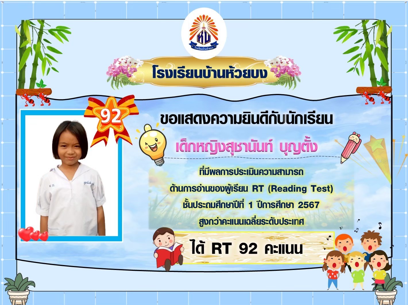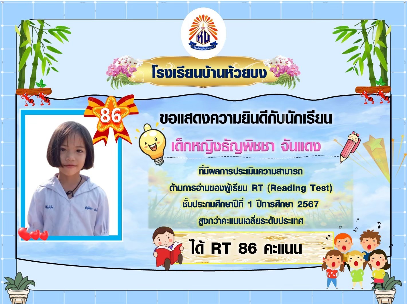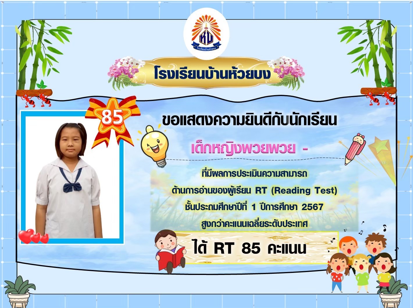 มีผลการประเมินความสามารถด้านการอ่านของผู้เรียน (์RT) สูงกว่าคะแนนเฉลี่ยระดับประเทศ