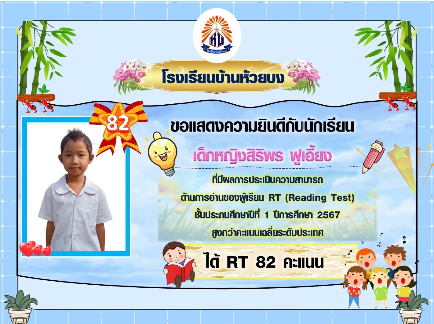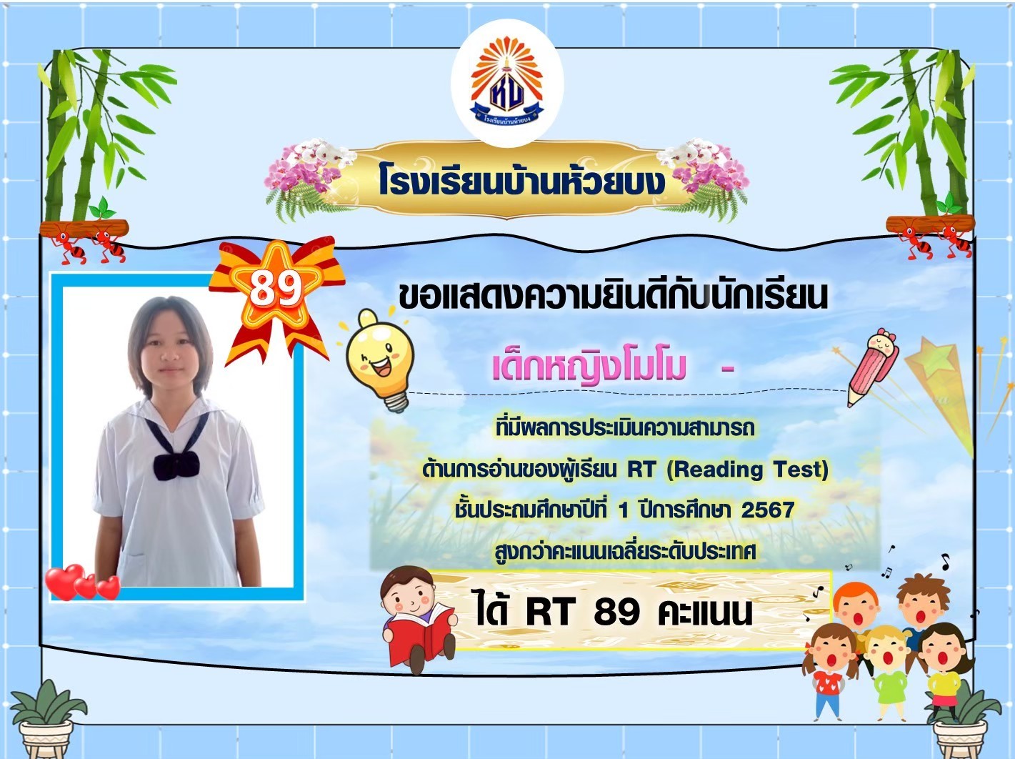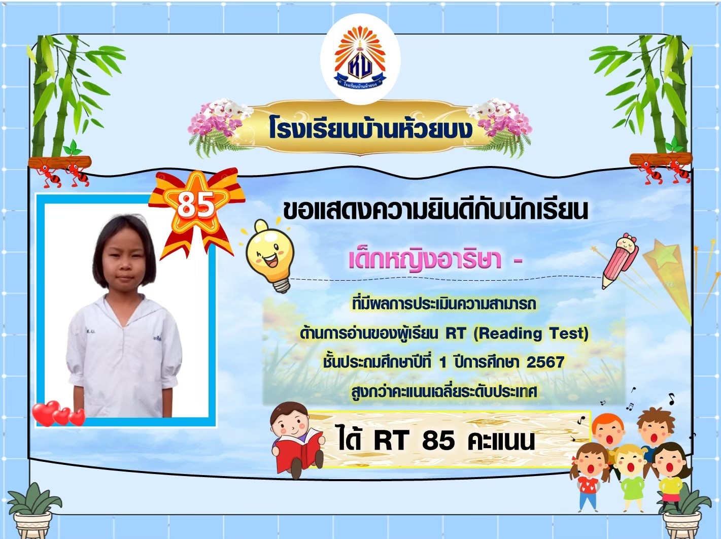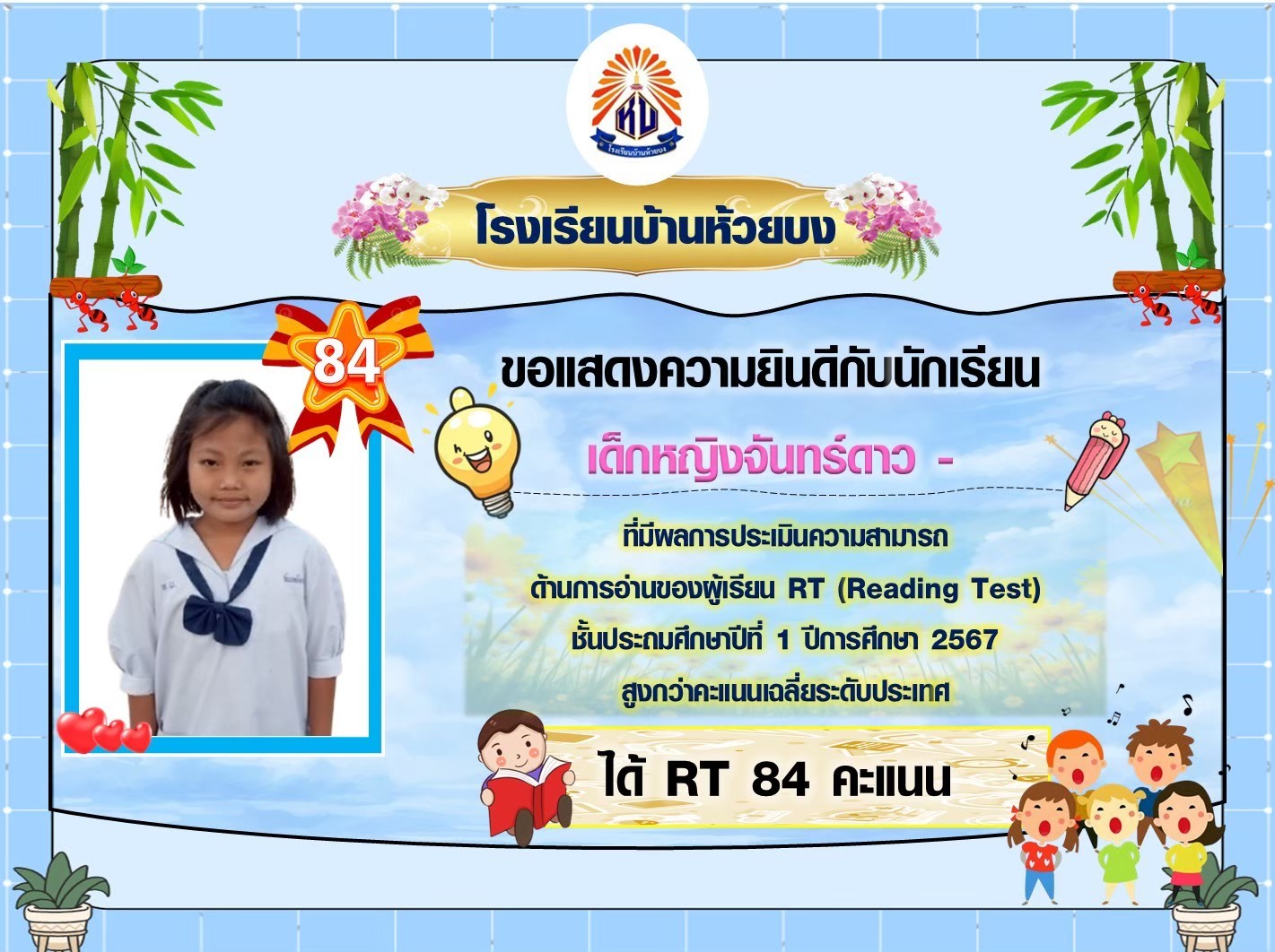 มีผลการประเมินความสามารถด้านการอ่านของผู้เรียน (์RT) สูงกว่าคะแนนเฉลี่ยระดับประเทศ
