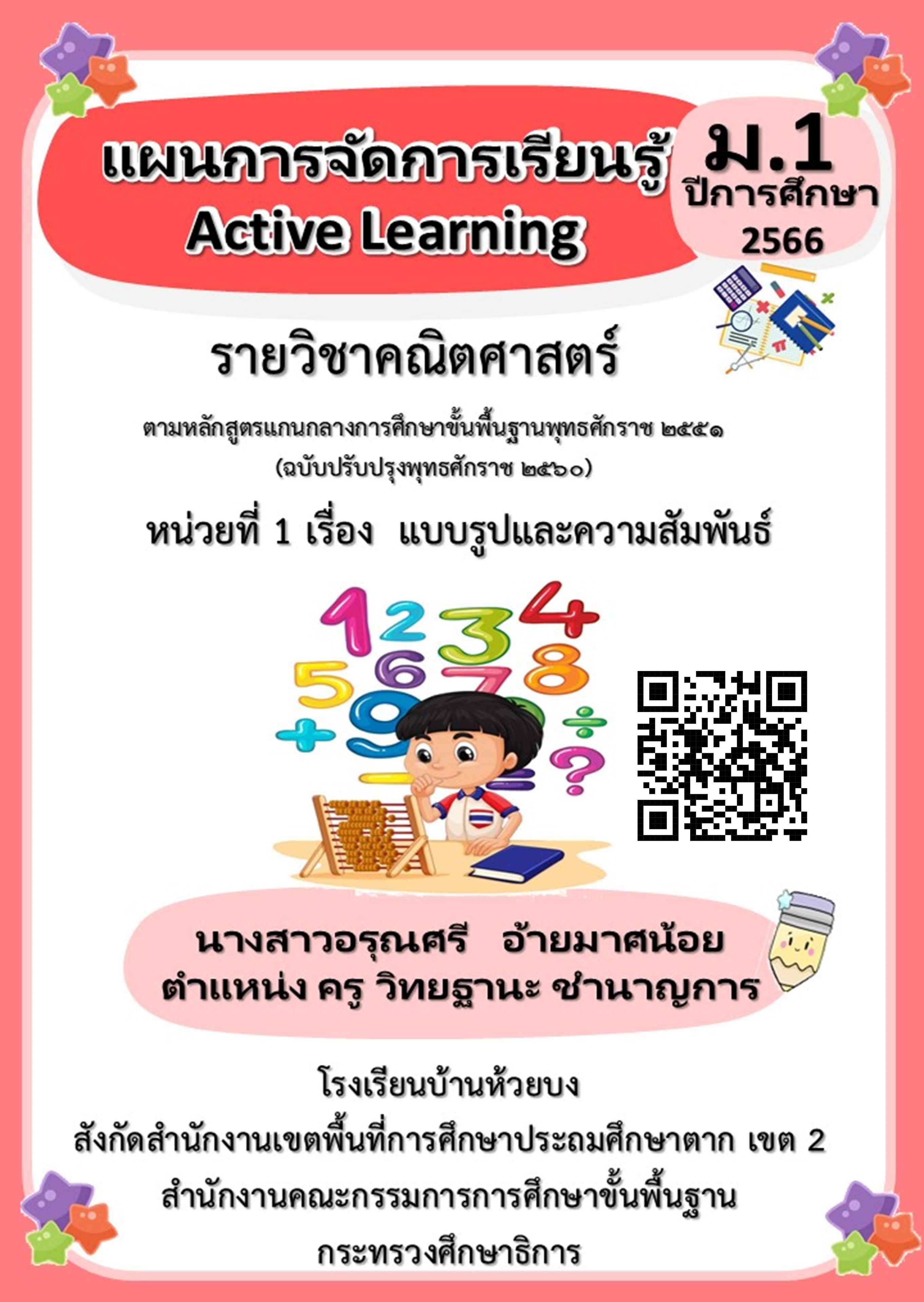 แผนการจัดการเรียนรู้ แบบ Active Learning 2566